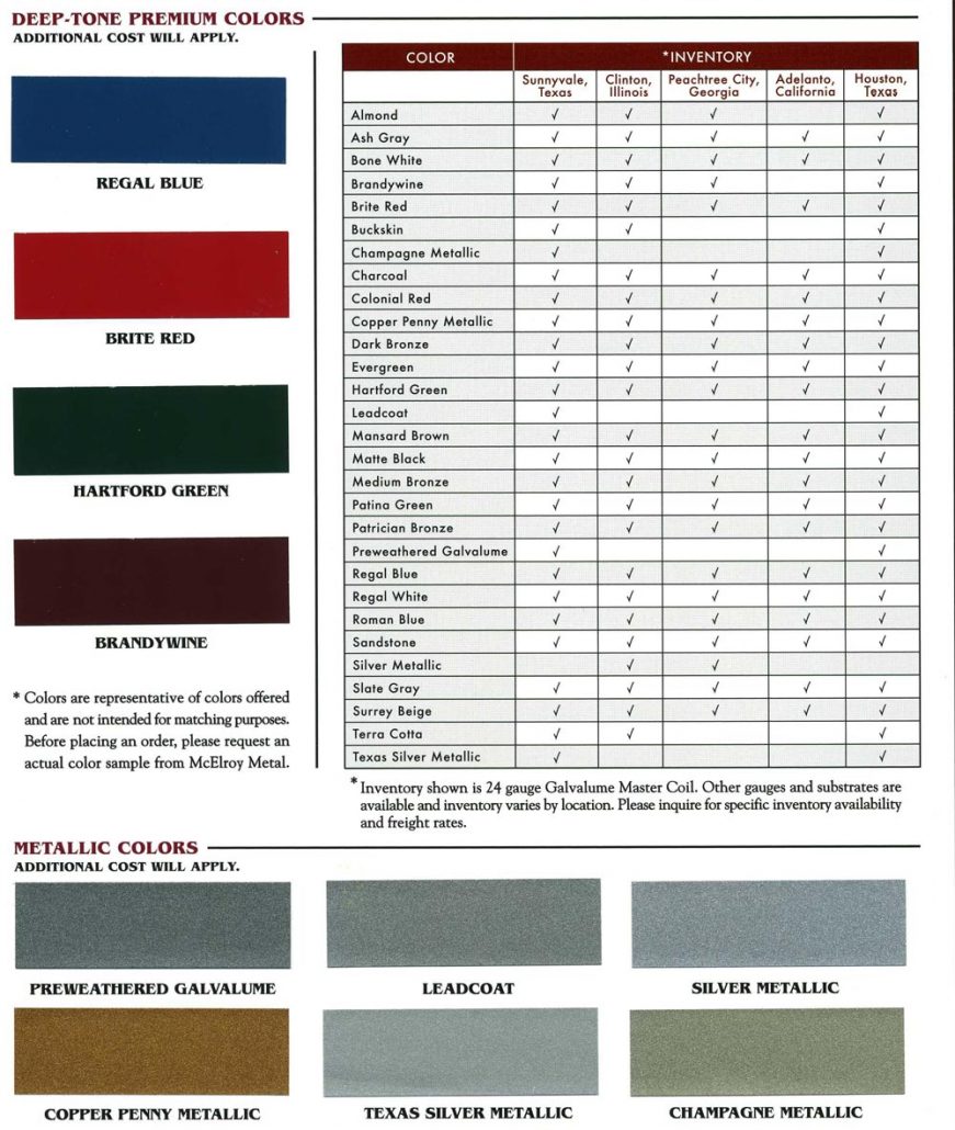 Our metal roofs are manufactured from high quality 24 gauge kynar coated steel roofing coil and flat sheets. We offer multiple panel profiles in multiple colors, copper and galvalume.